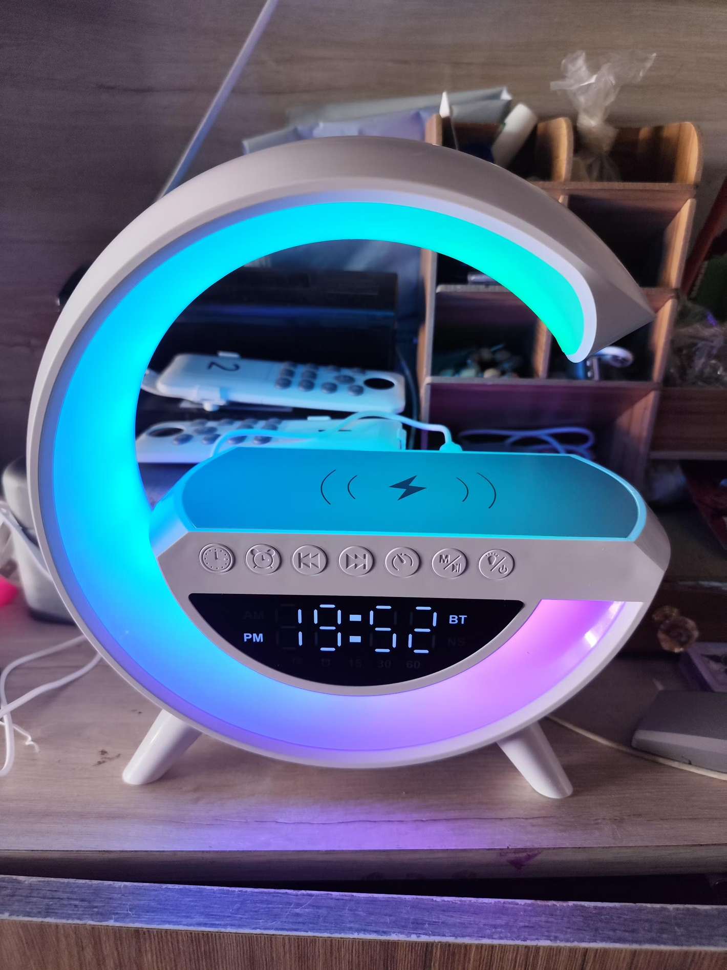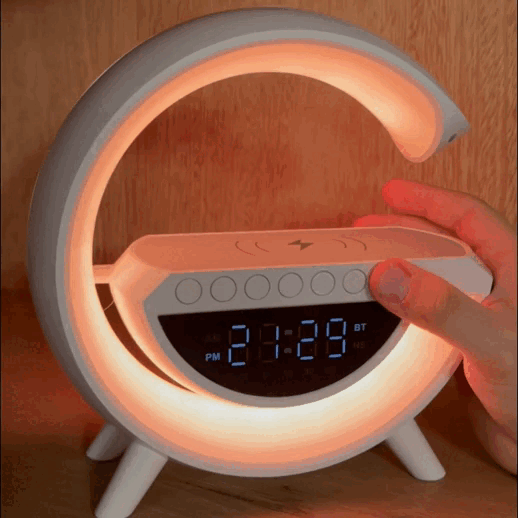 Con el Altavoz Bluetooth G tendrás música de calidad, reloj despertador y luz ambiental en un solo dispositivo. Además, podrás cargar tu móvil de forma inalámbrica sin cables molestos.