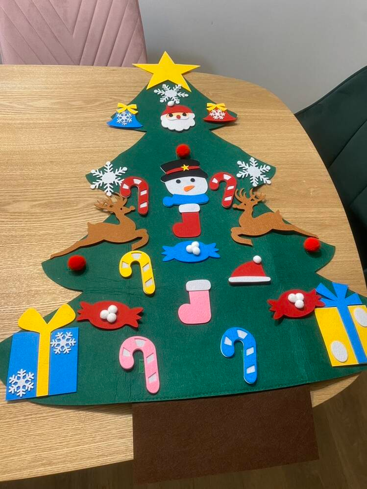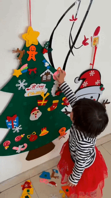 Los árboles tradicionales pueden ser un peligro para los más pequeños, entre cables, vidrios y adornos frágiles. Con este árbol de fieltro infantil, podrán jugar y decorar con total tranquilidad, sin riesgos.