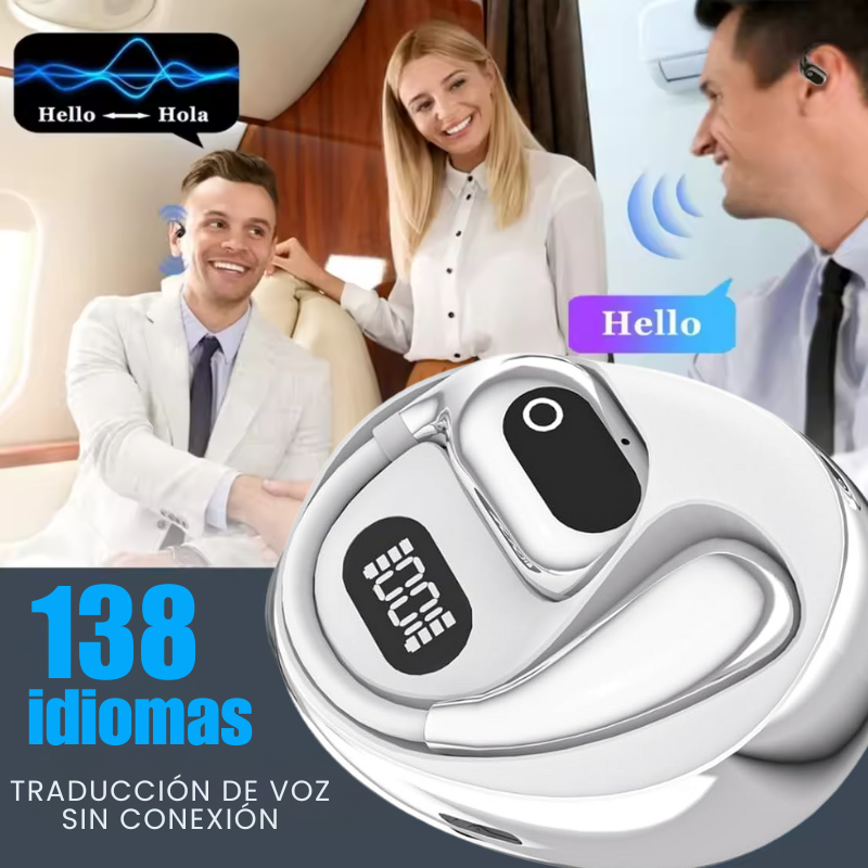 Con los Auriculares Traductores Inteligentes podrás mantener conversaciones en 138 idiomas de manera bidireccional y en tiempo real. Perfectos para viajes, trabajo o estudios, con un diseño cómodo, elegante y batería de larga duración.