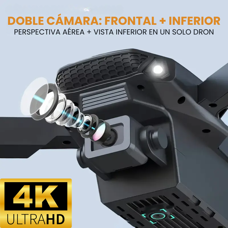 El W8 Pro Max integra doble cámara 4K para que combines vistas aéreas impresionantes con tomas inferiores únicas. Cambia de perspectiva en segundos y consigue imágenes nítidas desde cualquier ángulo.