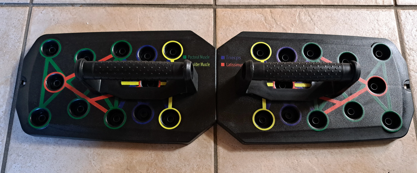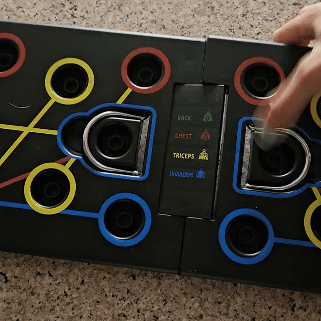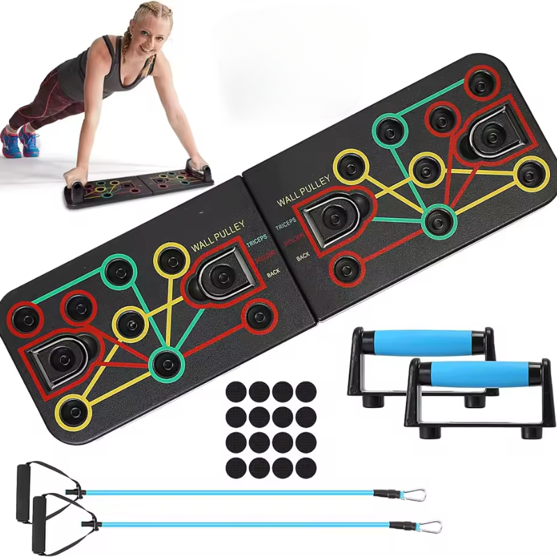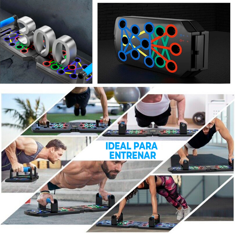 Con esta tabla 10 en 1 podrás trabajar pecho, espalda, hombros y tríceps con ejercicios simples, seguros y guiados por colores. Su diseño plegable te permite entrenar en casa, en la oficina o llevarla de viaje.